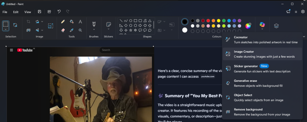 Image assistance in Paint, describing an idea and getting suggestions, variations, or edits instantly.
