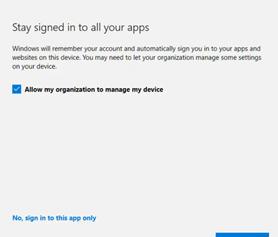 • No granular control over the “Allow my organization to manage my device” prompt, admins could not suppress or disable this prompt for users in scope.